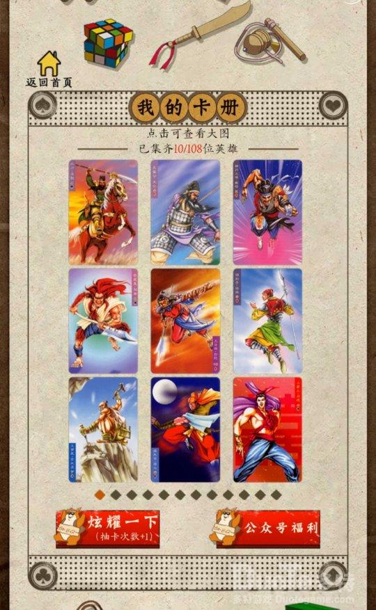 集到的水浒卡点击分享出去,隔壁的小伙伴都馋哭了,还能获得额外的抽卡机会!20年前没完成的水浒卡收集,这次一定能成功。