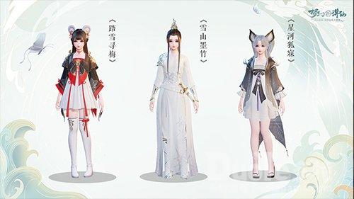 【全新角色时装展示】为了让玩家获得更精致的游戏体验,【踏雪寻梅】、【雪山墨竹】、【星河狐寐】三套时装正式上新。精致配饰、绚丽衣纹、多层衣料材质,诠释游戏细节。