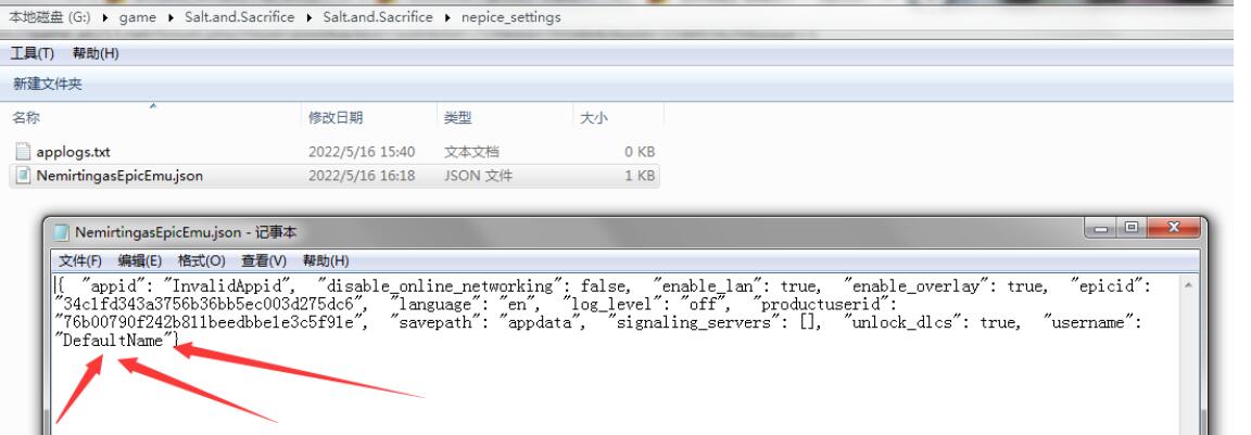盐和祭品改名字方法记事本方式打开Salt.and.Sacrifice\nepice_settings\NemirtingasEpicEmu.json。把"username": "DefaultName"中的DefaultName改成自己想要的名字,保存。(必须启动过一次游戏才有这个文件)