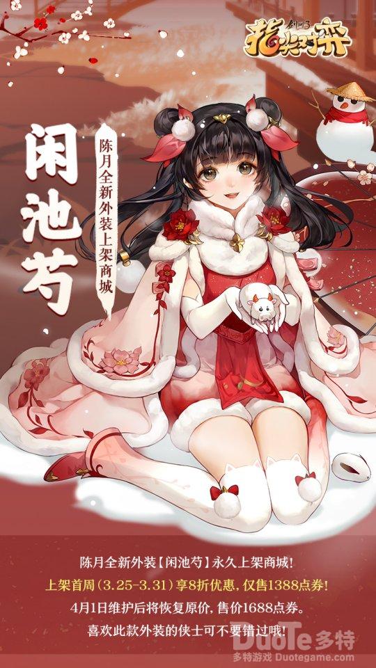 更加令人惊喜的是,全新外装上架首周(3.25-3.31)尊享8折优惠,仅售1388点券,还望喜欢的玩家千万不要错过!