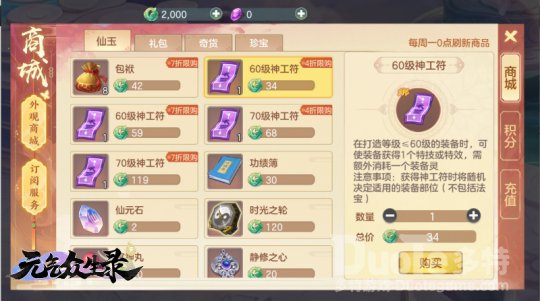 (2)商城:仙玉商城新增4折神工符售卖,并且原有的7折神工符在一段时间内仍可购买