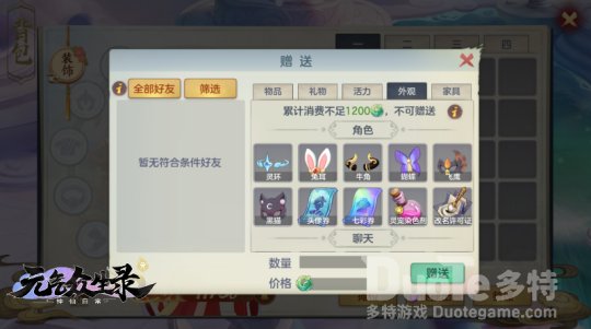ii、新增赠送外观、家具类道具需赠送角色累计消费≥1200,与被赠送方友好度达≥300