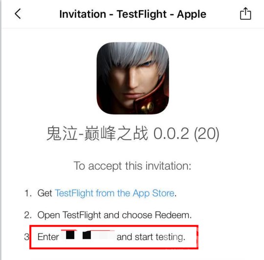 4.打开TestFlight,点击右上角“兑换”,显示“您已经以【邮箱账号】身份兑换了此邀请码”则证明您已成功兑换测试资格,之后关闭此提示,点击“安装”即可下载《鬼泣-巅峰之战》终极测试游戏包。