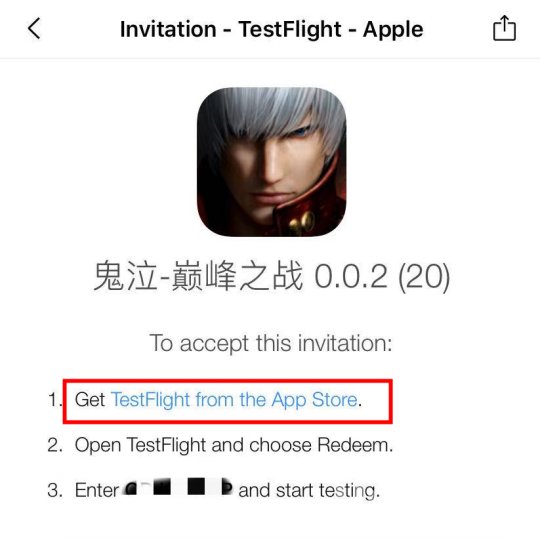 1.检查您在填写官方或好游问卷时留下的邮箱,查找发件人为【TestFlight】的邮件,确认其内容是否如下图所示: