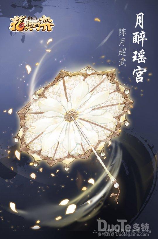 莹月照罗伞,花气满皇州。陈月曾远居长白山,偶遇一冻僵老者,施针救之。老翁醒转后,却吵着要寻回他的酒葫芦,陈月观其疯癫,便替往寻之。山中风刀霜剑,酒葫芦周遭却片雪不落,隐有暖意,一滴酒液沾落罗伞,便自伞面绽出月色花瓣来。莹白罗伞,加以月色花瓣,一时间风花雪月,飘香万里。