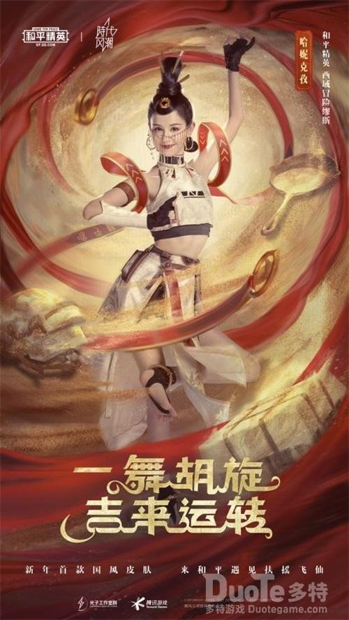 《和平精英》此次特邀一舞成名的西域仙子 — 哈妮克孜担任本期西域冒险缪斯,与刚刚在2021年春晚中担任开场舞领舞的国家一级演员殷硕老师一起,用最肆意的胡旋舞,展现[扶摇飞仙]套装的飘逸,在新年,掀起西域冒险之美。