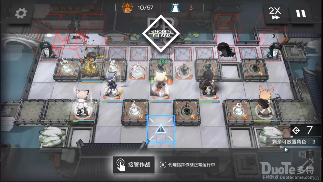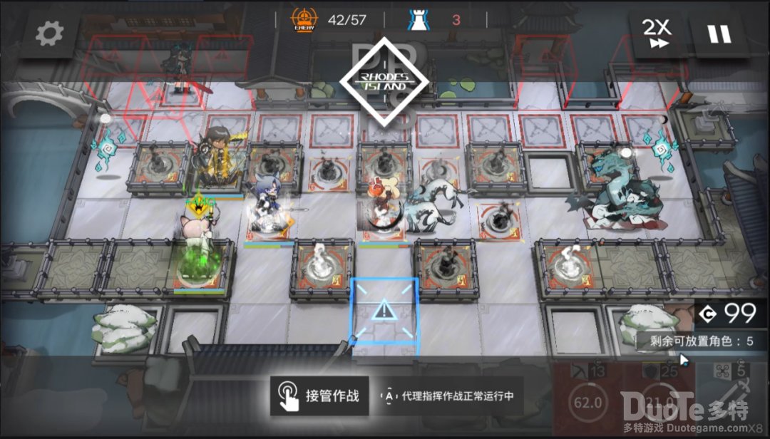 开局在下方部署先锋干员以及奶盾抗住下路的攻势,同时积攒费用。
