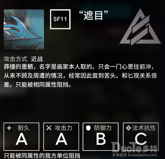 明晦之印的效果也不止于此,“遮目”、“得意”两个敌方单位只会被相同属性的我方单位阻挡,这使得部署干员时需要格外注意这两种敌人的走向。