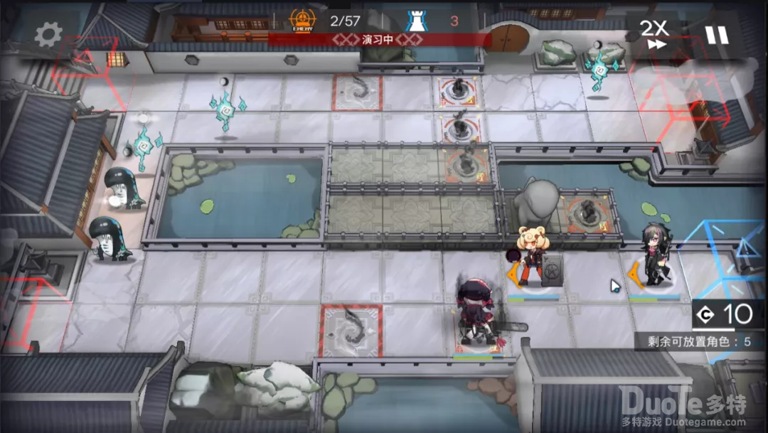 群卫的技能需要在第一波如意到达之前开启,远卫的技能则无过多要求。隔开一格部署远卫是为了防止偷闲吸引过多输出导致如意漏掉。