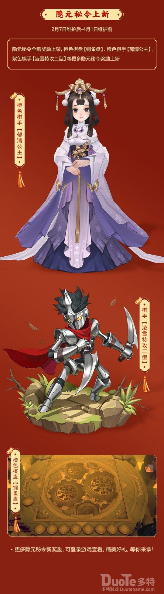 优雅端庄的棋手【郁清公主】加入S3隐元秘令奖励!谢渊与王遗风的酷炫超武亮相,其属性加成还可助力侠士闯荡江湖!(属性加成仅在非对弈玩法中有效)