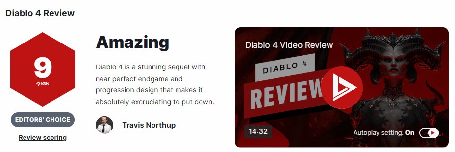 暗黑破坏神4目前游戏已经解禁了,很多小伙伴好奇这个游戏在ign上的评分是多少,本期小编给大家带来的是暗黑破坏神4ign评分一览,下面跟着小编一起来看看吧。