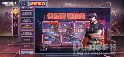 海量更新玩法升级,CODM新版本正式上线。叫上三五好友,在使命战场中快乐迎新、战不停!2月7日-2月14日,微信搜一搜,输入“使命召唤手游”领限量红包封面!