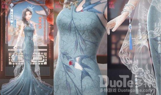 “最有生机的样子,可能是春天时燕子归来之图景吧。”夜宵在设计套装的时候,也充分参考了燕子归来时的姿态,为此匹配了贴身的剪裁,舒展的鱼尾式裙摆,以及质地轻柔的丝缎披帛。搭配别出心裁的花纹刺绣,纹样象征着满满的美好寓意。?