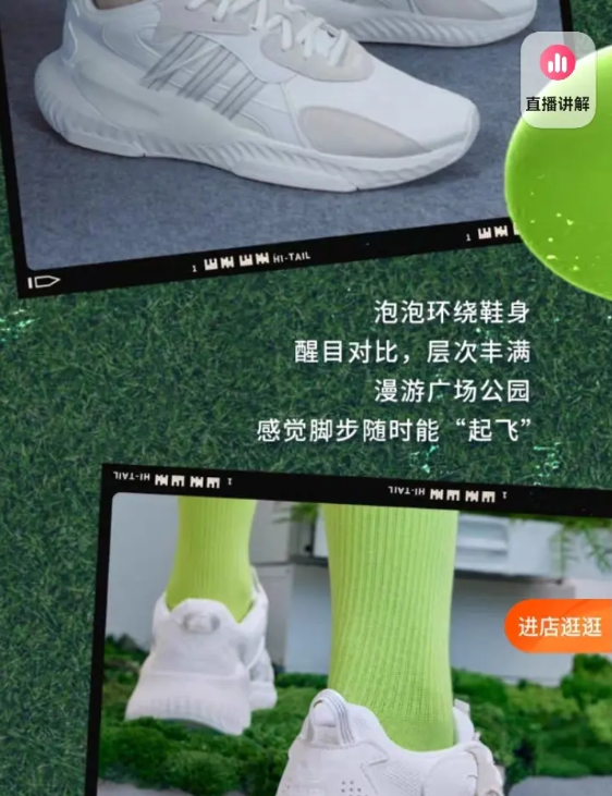 注意题目的两个关键字,泡泡鞋和感觉,既然我们已经在泡泡鞋详情页里面,那么就把重心放在寻找“感觉”二字上面,一直下拉详情页,终于被我发现下面的一段话:泡泡环绕鞋身醒目对比,层次丰满漫游广场公园,感觉脚步随时能"起飞"。