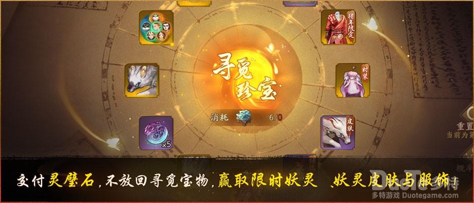 1月28日维护后至2月11日24时,大人们可以在“宝肆藏珍”活动中,用灵壁石换取限定妖灵天狗、天狗皮肤焰月之烛、猪年时装朱夕云绸等稀世奇珍。活动开启后,降妖师大人可以从五位珍宝商人手中任选十二件珍宝组成自己的专属宝肆,每次交付灵璧石若干便可随机获取一件,直到宝肆中的12件珍宝被全部拿走。趁新春福运正旺之时,来一拼手气吧。