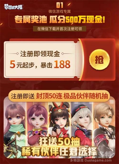 【微信专属:猎狼小队集结瓜分500万现金红包】微信游戏专属,猎狼小队集合瓜分500万现金红包!注册即领现金,5元起步,最高暴击188元,还有价值1000元的极品高战礼包助力玩家梦想启程。在微信下载并首次注册游戏,还可领取到微信游戏专属等级礼包,每日登录游戏还能参与抽奖,百万豪礼任性抽。