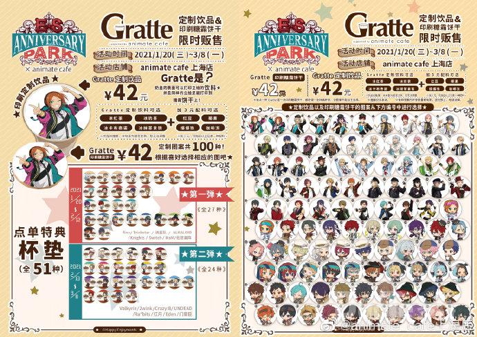 定制饮品&印刷糖霜饼干 视觉味觉双重体验活动期间,制作人们在《偶像梦幻祭2》 × animate cafe主题咖啡厅还可以品尝到定制饮品和印刷糖霜饼干!各种小偶像们的图案,共有100种可选,你可以选择自己心仪的偶像,将图案定制在饮品上或者印刷在糖霜饼干上,就像和小偶像们共进午餐!此外,点单特典还有足足51款杯垫可供选择,绝对是制作人们的福音!