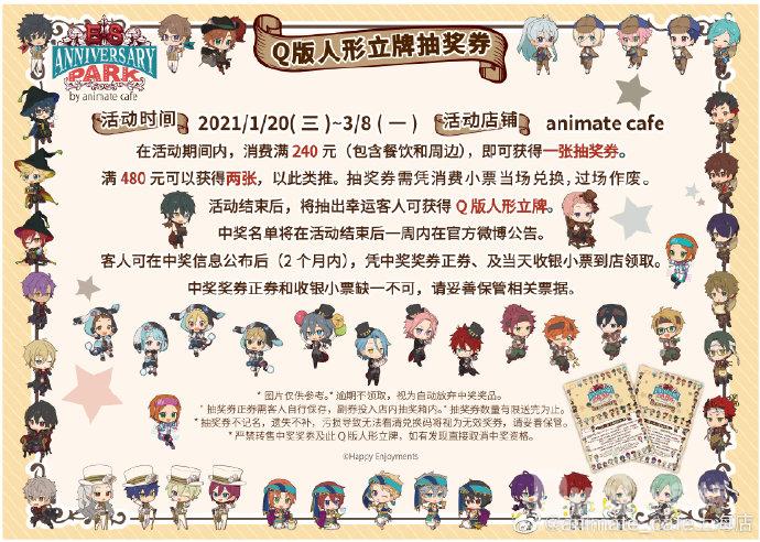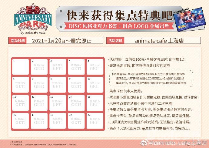 转发赢好礼 全套周边等你抱走除了上述精彩活动,转发@animate_cafe上海店 活动微博,也有机会获得好礼。官方将在本次主题活动结束后进行抽奖。
