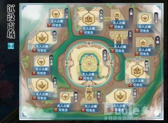 “沉没古域”将推出14个新地图,依照行政划分为城、镇、村、道四个等级,其中城市有2个附属地图南关和北关,县镇地图有1个附属地图,分别为上栅和下栅。