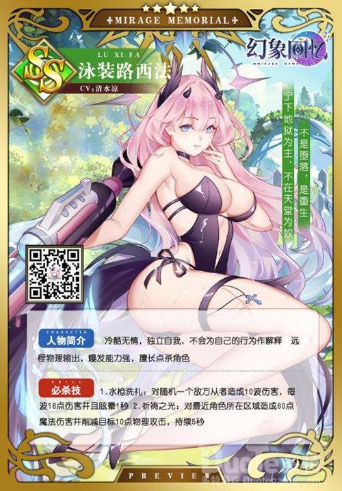 堕落天使路西法,泳装演绎极致诱惑!路西法,在西方历史神话传说中多以代表黑暗的堕天使形象为人熟知。在《幻象回忆》中,路西法延续了堕天使设定,运用黑羽装饰巧妙包裹着她的身体,使她看上去玲珑有致!而换上泳装的她,更是将身材优势发挥得淋漓尽致!泳装中的绑带、镂空完美勾勒出她的身材,而暗紫色更映衬出路西法白皙如牛奶的肌肤,上演极致诱惑,好想和路西法大姐姐一起打水枪哦~biubiu~