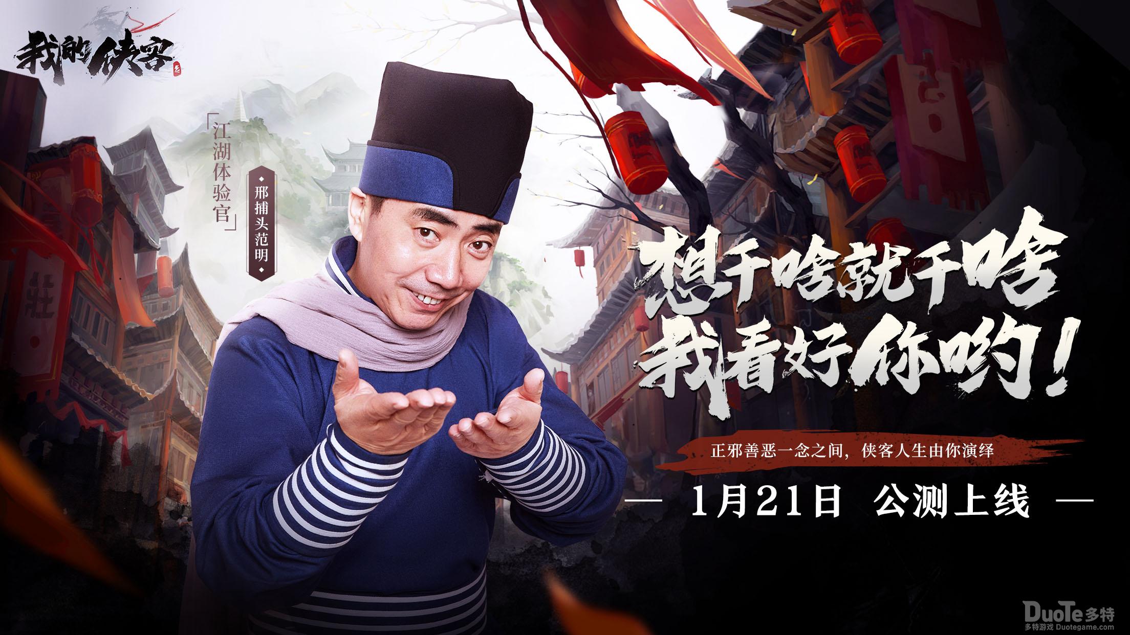 由电魂网络研发,极光计划发行的复古武侠策略RPG手游《我的侠客》“善恶一念”公测版本即将在1月21日正式上线!值此之际,《我的侠客》正式官宣邢捕头—范明担任首席江湖体验官。准备好了吗?!邢捕头带你开启奇妙江湖冒险!我看好你哟!