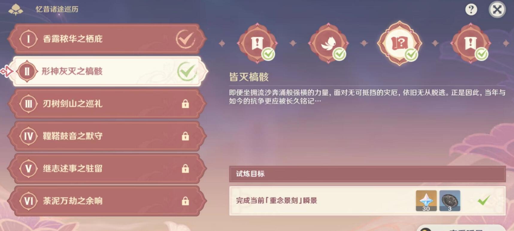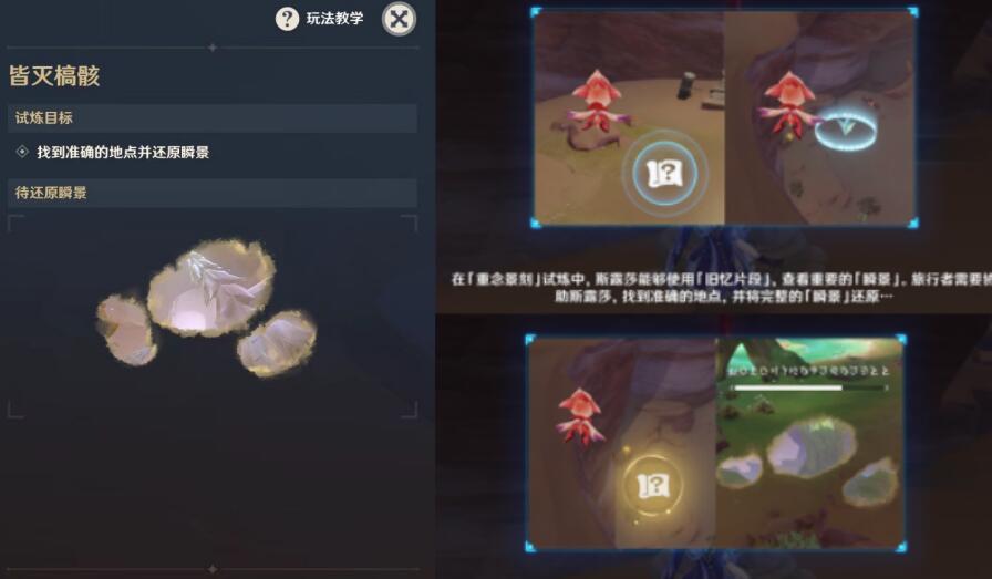试炼任务:完成【重念景刻】瞬景(提供残缺图景在地图找到对应位置把残景投影上去)