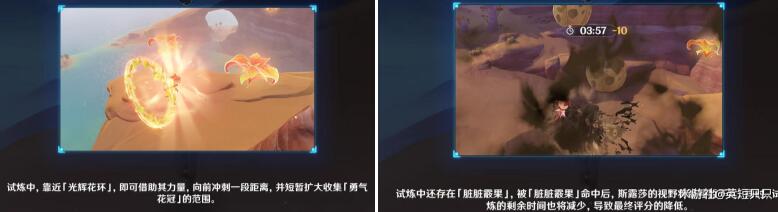抵达终点时剩余时间越多,收集的「勇气花冠」越多,试炼结束时获得的评分就越高。