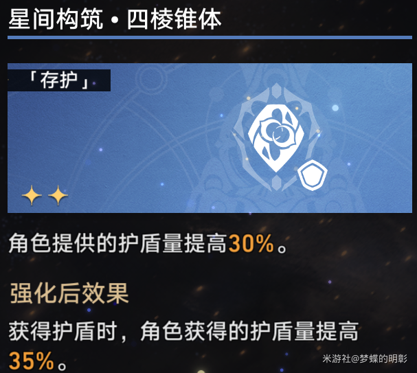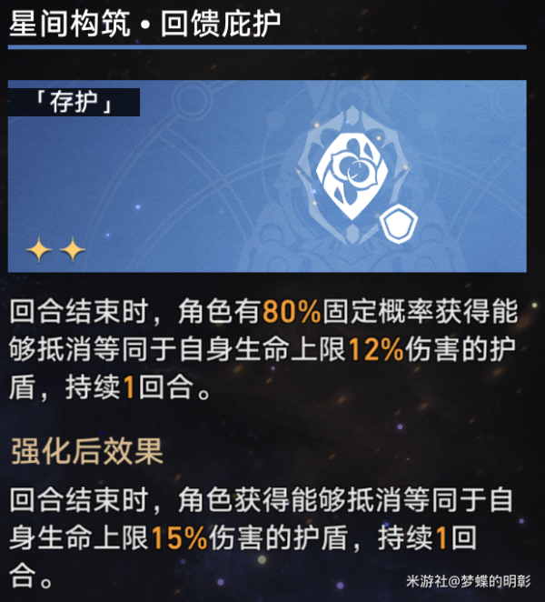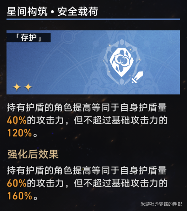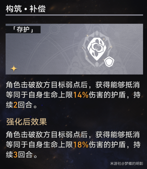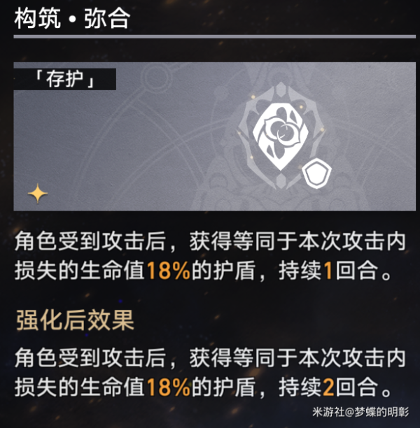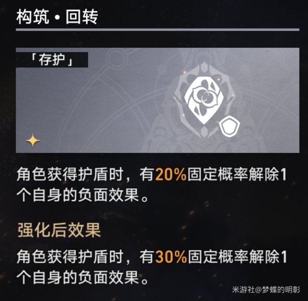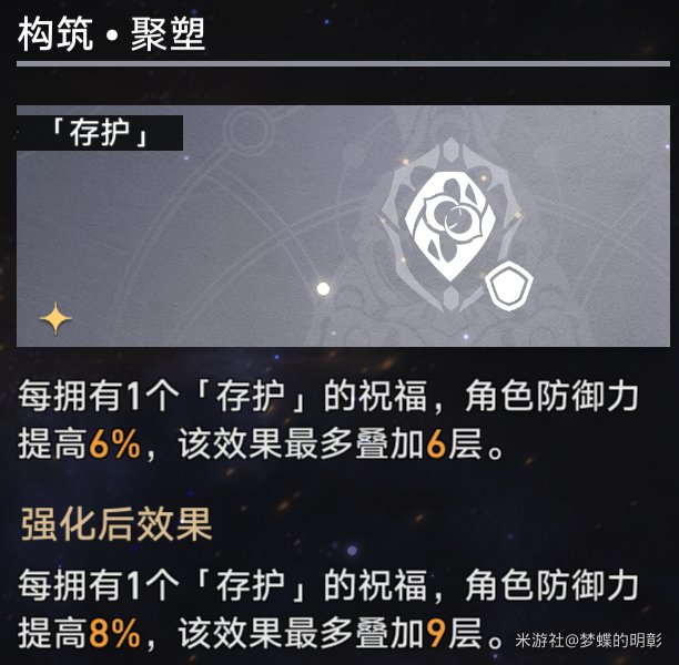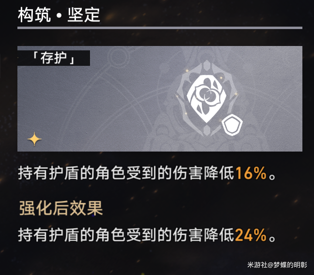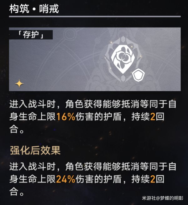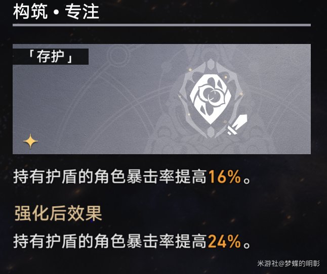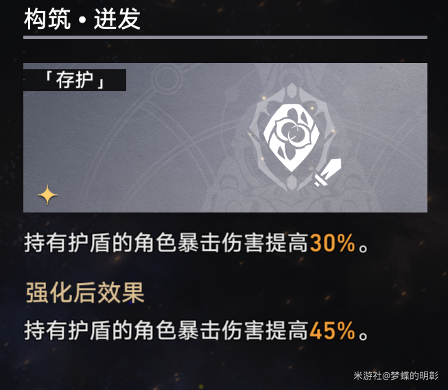 升级后无条件提升角色获得的护盾量,对于无论生存还是输出都靠护盾的存护流来说,属于是非常核心的提升。