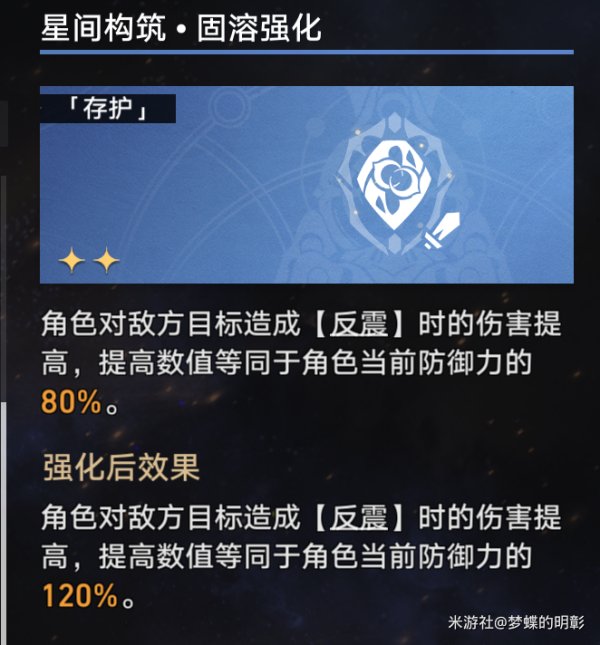 目前大部分主动上护盾的角色提供的护盾值都与防御值挂钩,这个祝福能够提供高额的防御值加成,作为一星祝福成长性极强。