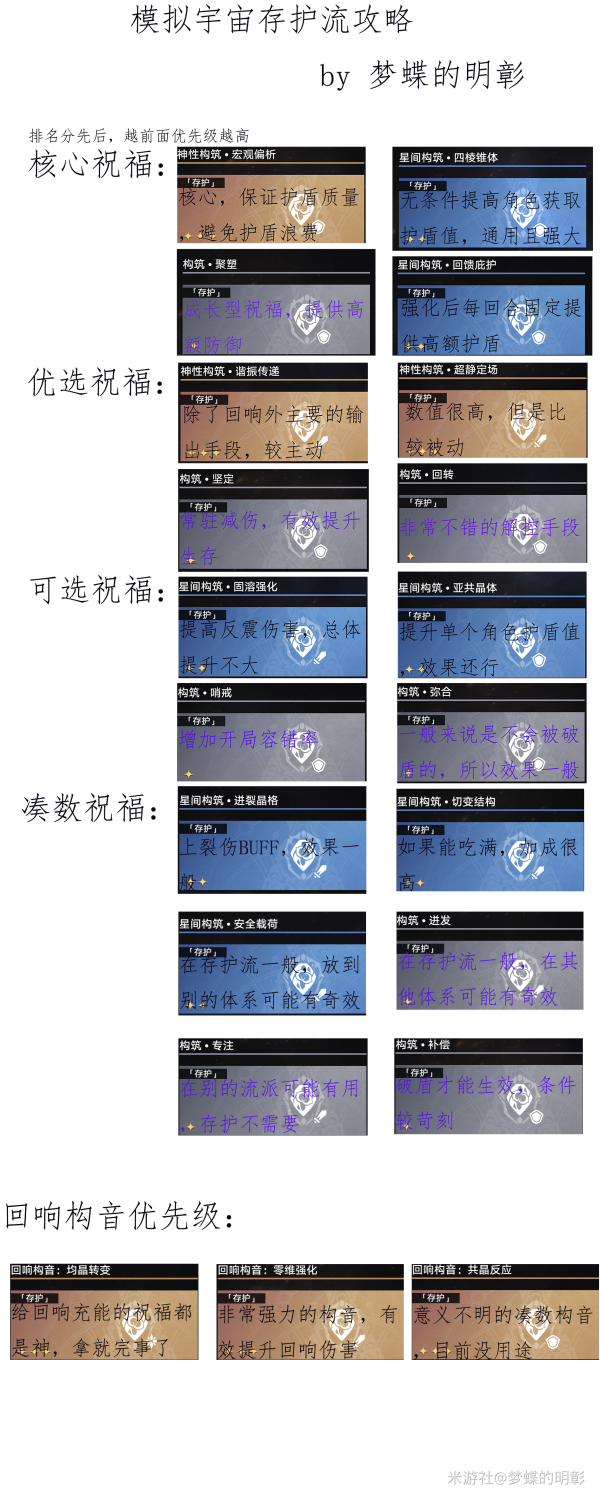 4、因为我个人觉得存护的核心还是护盾,所以跟护盾没关的祝福我这边给的推荐会偏低一点。
