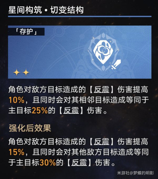 【反震】是存护流除了命途回响外的主要输出手段,如果有杰帕德,这会是一个非常爆炸的祝福,如果没有也能提供不俗的输出,并且能够主动控制,可以接受数值的偏低。