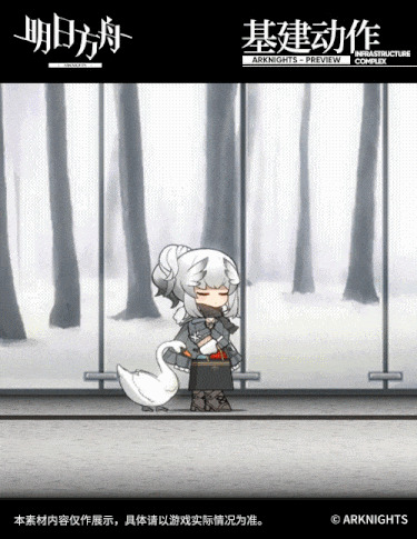 SD小人的形象顺带把立绘中的白天鹅也加入了进来,柏喙的发型也很像是天鹅翅膀的造型,手中提着的小袋子不知道装的都是些什么,吸引着旁边的天鹅跟着它走。