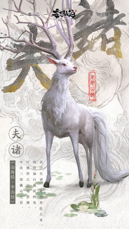 第六位——夫诸《山海经·中山经》:“中次三经萯山之首,曰敖岸之山,其阳多㻬琈之玉,其阴多赭、黄金。神熏池居之。是常出美玉。北望河林,其状如蒨如举。有兽焉,其状如白鹿而四角,名曰夫诸,见则其邑大水。夫诸是中国古代神话传说中的神兽之一,夫诸一种长着四只角的鹿,它的情状似温柔洁净,喜欢四处角戏。它常年生活在一个遍布黄金,矿藏,美玉,优美富饶之地。