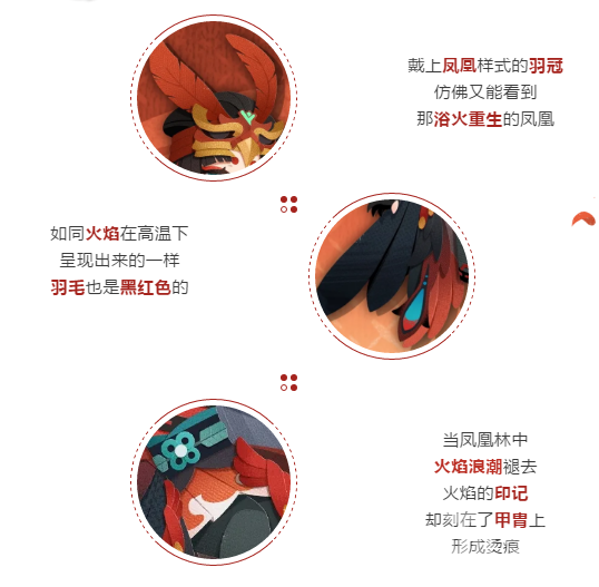 你们见过凤凰涅槃的样子吗?凤凰在烈火中燃烧,以换取人世的祥和。那光芒太过耀眼美丽,吸引着凤凰火向它飞去~涅槃后的凤凰火身披红黑羽毛,俨然成为一个端庄的御姐,而赤色羽冠代表着她的热血!