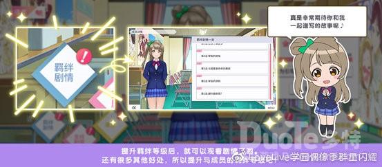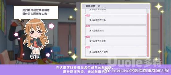 在【成员剧场】中,玩家可以选择任一学园偶像进行交流、查看资料等,以此来增进你和她之间的了解~每天都进行聊天,还可以加深彼此之间的羁绊哦!