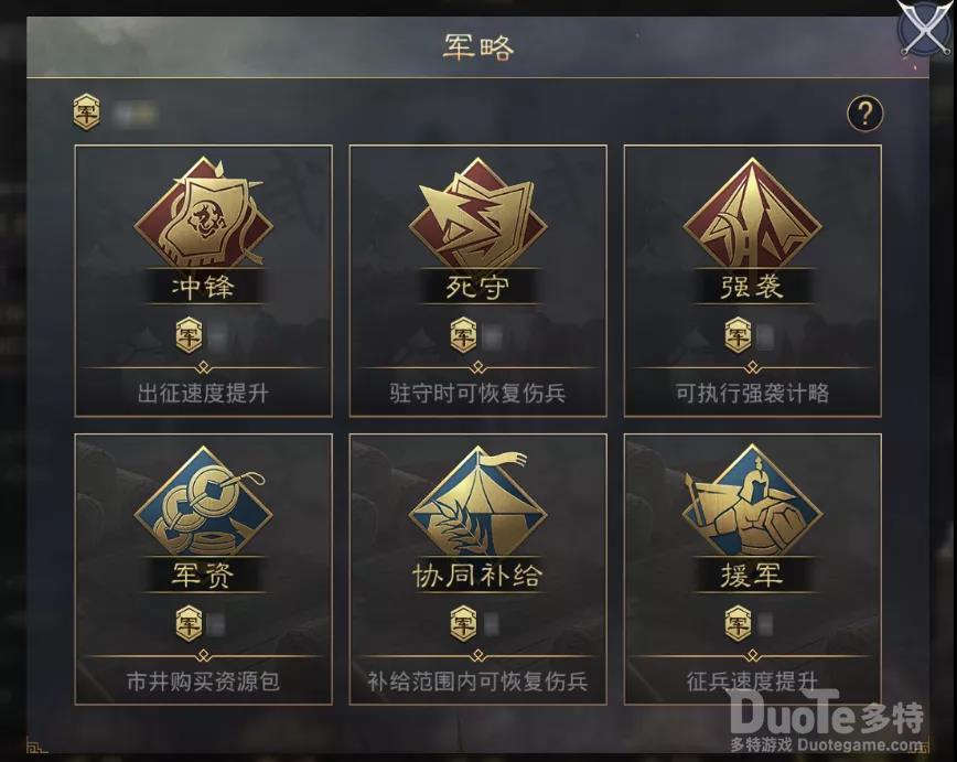 筹备一场完整的战争,需要举国上下的通力协作。师辎不绝、坚壁清野,国策作为国家战略的具象化,在率土的战争中扮演着重要的角色。本赛季中,国策由更加真实的军略体系替代。军略由诸位官员们来分工执行:武官发布战斗任务,率领同盟成员在前线破阵杀敌;而与此同时,文官则为全盟提供辅助支援。
