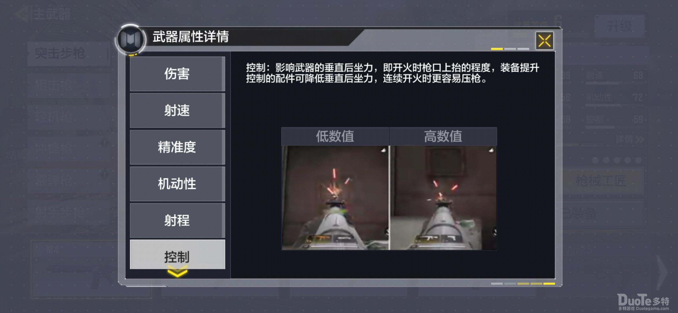 专业六维属性 满足不同角色定位在CODM中,每把枪械都有伤害、射速、精准度、机动性、射程、控制六个属性。伤害和射速决定子弹的速度和杀伤力,精准度指的是在腰射或开镜状态下,子弹打出去的散布程度,以及水平后坐力。机动性指的是一系列跟速度有关的属性,射程影响的是子弹打出去后的衰减机制,子弹飞的越远,伤害就越低。控制则指的是这把枪的操控,即垂直后坐力,控制属性越大的枪,后坐力就更小。受到六大属性的整体影响,每把枪械在各方面的表现以及手感上也因人而异,这也决定了玩家所设计的枪械有着高度的独创性,配合玩家依据战局随时改变的角色定位,不同配件自由调配,可以满足不同战场模式的需求。