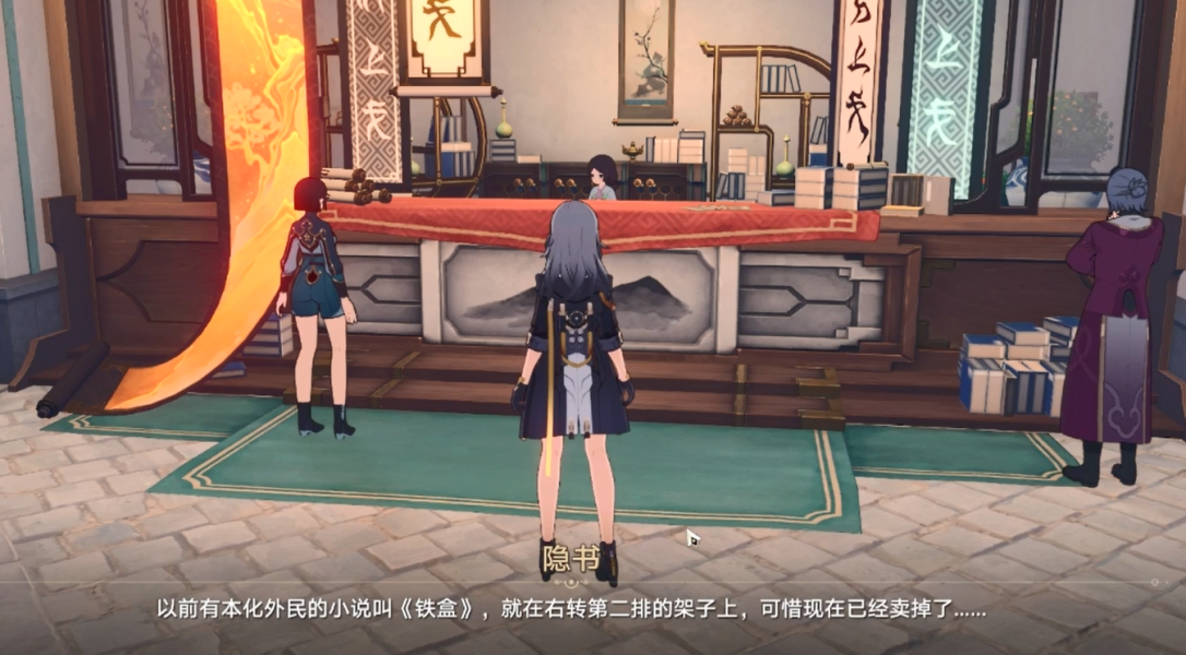 他会给我们一个【陈旧的铁盒】,再次对话会告之铁盒是从三余书肆获得的,或者看铁盒的简介或者再去问赎珠坊掌柜,都可以知道