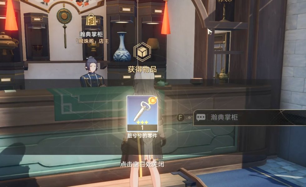第一次与赎珠坊掌柜对话时他会送一件【脏兮兮的零件】