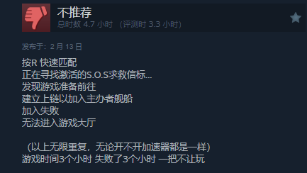 当然以上都不是最致命的,游戏还会毫无征兆的闪退,闪退了不要紧,关键是闪退后又要重复开始进游戏的那个步骤,等进游戏一看,没有任何经验和金币的增长,纯纯的星际雇佣兵了属实,还是没有报酬的那种。