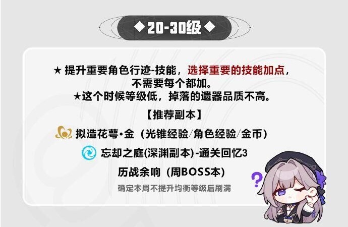 上面全部就是崩坏星穹铁道开荒体力规划20-30级建议,希望能为各位玩家们带来帮助,想要了解更多游戏攻略及资讯请持续关注多特游戏。
