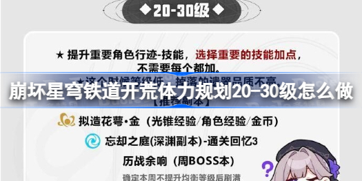 崩坏星穹铁道中玩家可以通过规划体力最大化地提升等级,有玩家想知道崩坏星穹铁道开荒体力规划20-30级怎么做,下面是崩坏星穹铁道开荒体力规划20-30级建议,一起看吧。