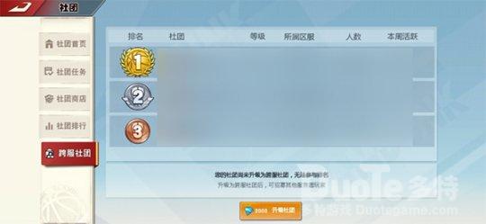 福利提升!跨服社团收益盘点跨服社团有什么优势?玩家们在其中可以得到什么好处?虽然问题直白了点,但答案是有的!首先,跨服开了,社团的人自然多了,人多力量大,这直接意味着社团活跃度的达成速度就提升了,以前每周都拿不满的社团周活跃度礼包轻松就可以全部拿到啦。其次,更多活跃且实力强劲的玩家参与到社团战中,可以为社团争取更多的社团积分。在目前的游戏设定里,社团积分不仅会影响社团排名,还会直接影响冠军杯赛的正赛名额。如果大佬云集,还怕社团不强?跨服模式的开启,让不同区服的高手们可以汇聚一堂,有望直接提升社团实力。《灌篮高手》手游每周五都会向玩家们公开社团积分排名TOP30,想在上面看到自家社团的名字?那可要好好努力咯。