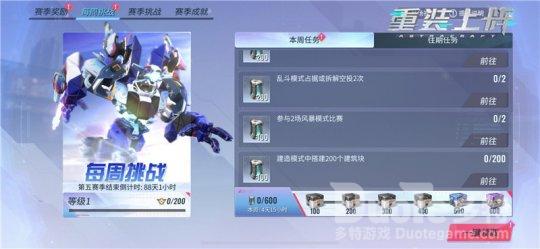 成就宝箱、赛季挑战,玩法丰富奖励多除了赛季通行证带来的各类新模块、新外观,《重装上阵》新赛季“白色誓约”里还为工程师们准备了许多新玩法。每周挑战里,工程师们将以“周”为单位迎来不同挑战,达成目标后就有丰厚的赛季积分、星币等奖励送上;赛季挑战中,更困难的任务等你完成、赢取赛季积分与星币等奖励!有了这些赛季积分,工程师们提升赛季通行证等级也会更加轻松快捷!如果完成赛季成就,赛季结束后还会根据最终成就点送上宝箱,让你收获更多额外豪礼!