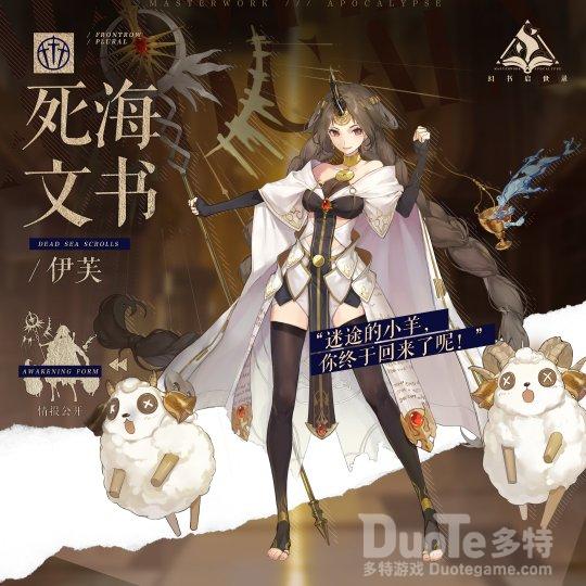 还有类似《死海文书》这样本体为羊皮古卷的古老圣经原抄本,将羊皮纸中的“羊”抽离出来赋予生命,这就很有画龙点睛的味道。《死海文书》伊芙既是性格活泼的牧羊人又是能行使奇迹的先知,她将自己视为迷途羔羊的指引者,在美术上也是神圣与活泼兼顾 ,连大怪兽贝希摩斯和大海怪利维坦对她来说都是毫无威胁的可爱小羊,视觉表现上颇有冲击力。