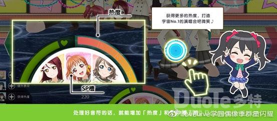 在演唱会中成功点击音符可以提升【热度】和【SP槽】,