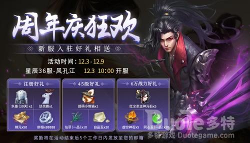 新服狂欢 好礼相送为庆祝《雪鹰领主》手游周年,12月3日10:00还将新开一组具有纪念意义的服务器:星辰36服-风孔江。只要超凡修行者在12月3日-12月9日期间入驻新服,即可获得专属注册好礼、45级好礼、6万战力好礼三重大礼,助你修行路上快人一步!