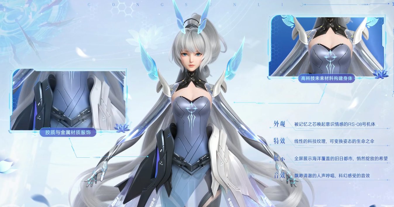 机械生命的皮肤主题下,采用了高科技未来材料构建RS-08的身体,并加入机械感受的部件丰富整体结构。