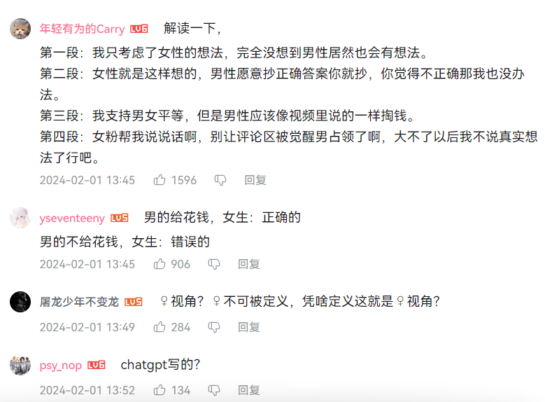 讲道理,这种“说教男孩”的套路,在十年前还是有市场的,但随着版本一代代更新,早就被市场淘汰了,所以这期视频下面毫无疑问骂声一片。