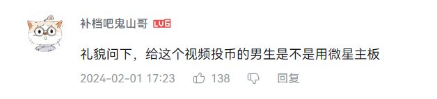 而且微星又被Cue到了,你问我为什么不笑?因为我去年双十一刚买了微星主板。让我看看小丑是谁,哦,是我自己啊(哭)。